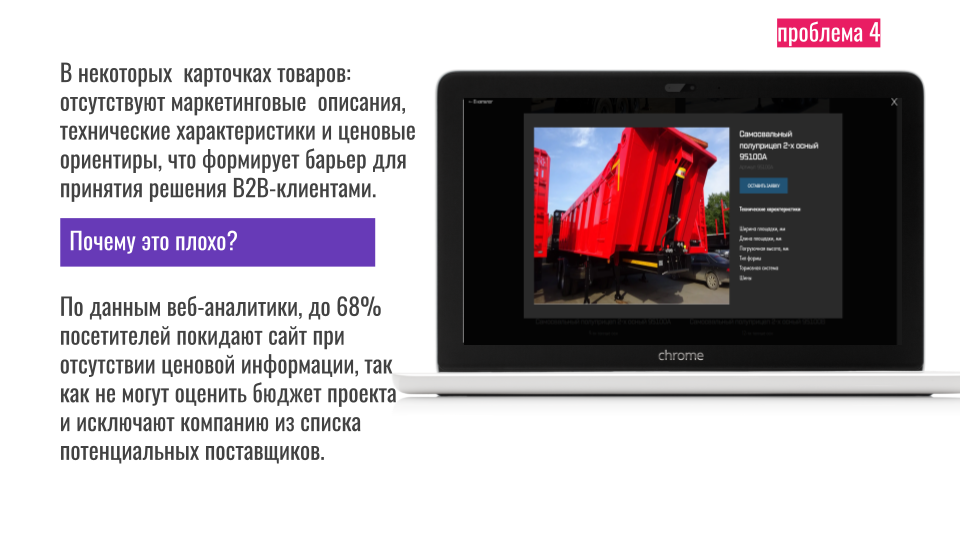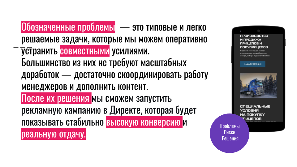 Летом 2025 года позвонили представители завода прицепов из Новосибирска. Производят прицепы для грузовых авто, работают в B2B. Полгода сотрудничают с маркетинговым агентством, бюджет — около 100 000 рублей в месяц. Результата — ноль. Ни одного звонка, ни одной заявки.
