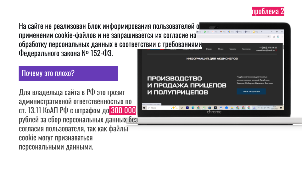 Нет предупреждения о куки (мелочь, но для соответствия закону — важно).