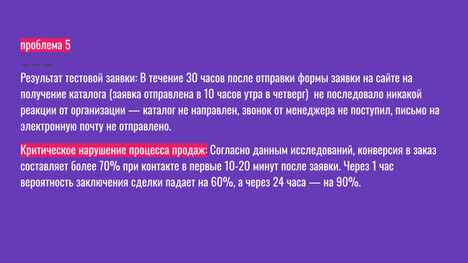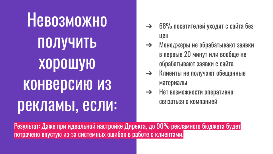 Агентство же просто гнало трафик, не думая о том, готов ли сайт его принимать. Не спросили: «А у вас вообще каталог есть? А менеджеры знают, что делать с заявками? »