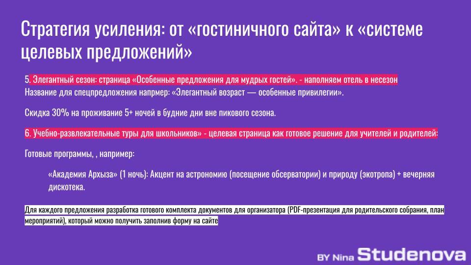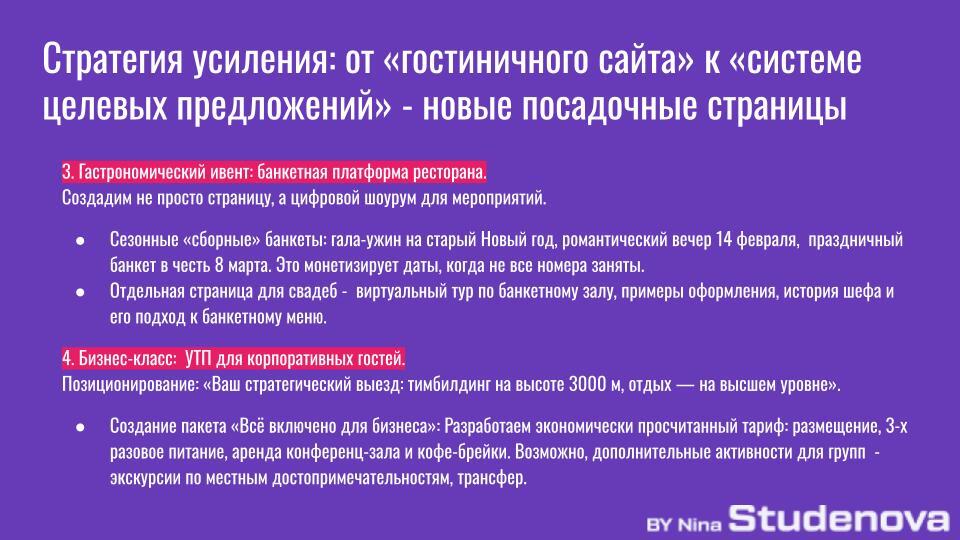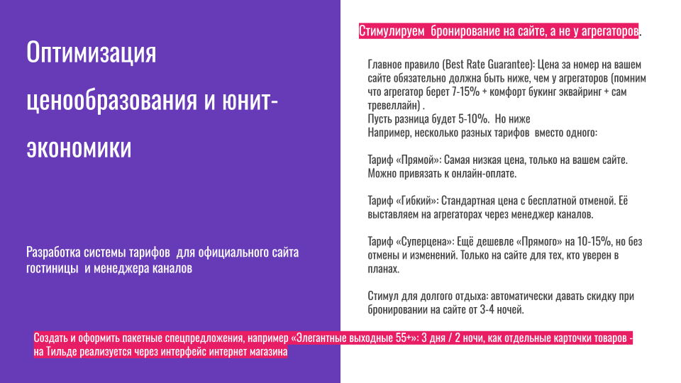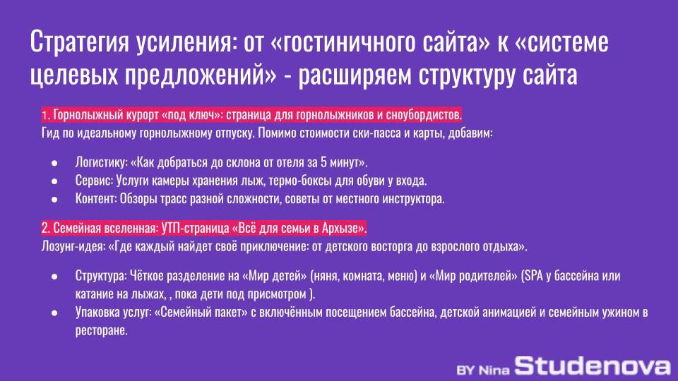 — Соберите пакеты: «Романтический уикенд», «Семейные каникулы», «Активный день». Чтобы гость не думал, а просто брал готовое решение.
