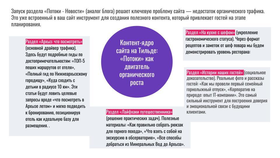 Еще один случай. Отель в Архызе. Новый, дорогой, с видом на горы. Сайт сделали на Тильде — стильно, современно, фотографии одна лучше другой. Запустили Яндекс Директ, выделили бюджет. Ждут гостей. А они не едут.